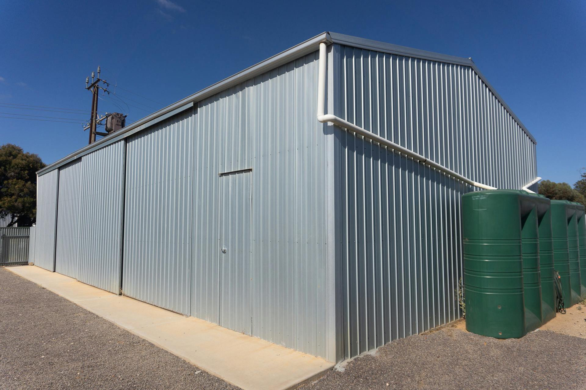 - Poly rainwater (approx. 15,000L) plumbed to the house & 2x Bushman 3,000L tanks attached to the shed with pump